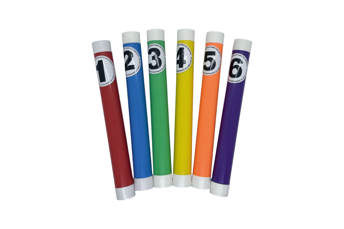 Heavier model, sink and place themselves standing at the bottom. Numbered from one to six in various colors.
