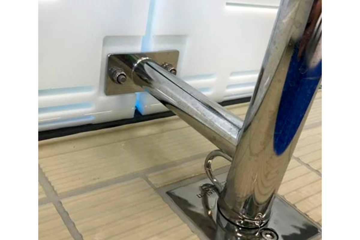 Turnboard in plastic with cable fastening. The attachments are made of seamless pipes, diameter 40 x 2 mm, fitting floor mount.