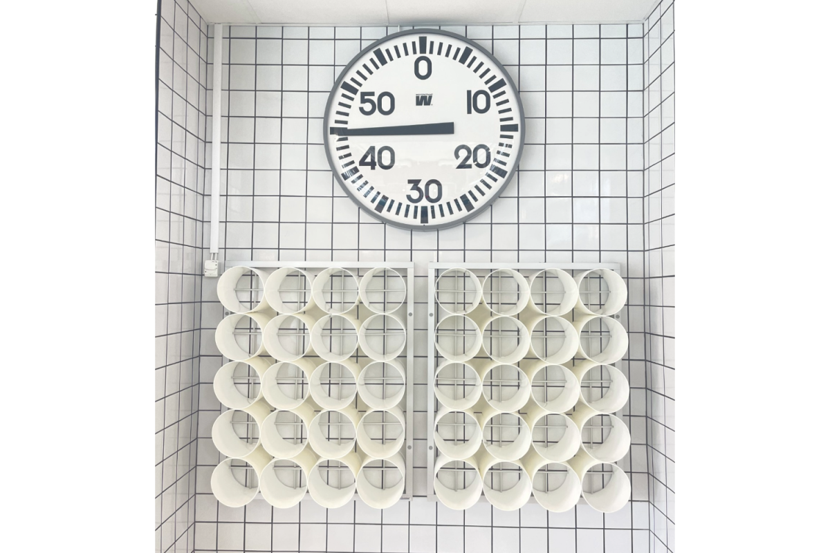 Pace Clock- Wall Anchored anchor for intervall training. 1 black hand for 60 second intervals - for interval training. . High quality - manufactured for aquatic environments. . 230 V, wall mounted