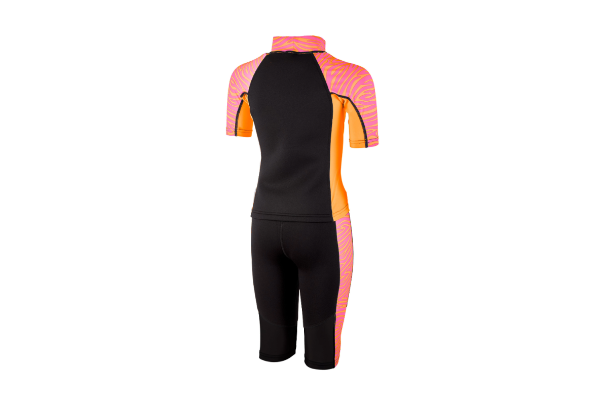 En rolig och färgglad våtdräkt som är tillverkad av 2 mm tjockt isolerande SCR-neopren som ger skydd mot kyla.