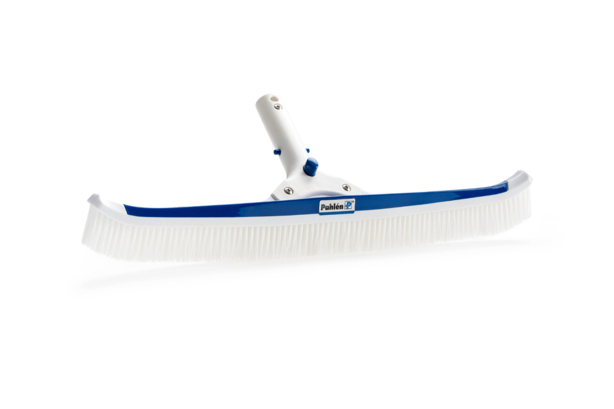 Poolborste. Kraftig, bred borste med svängda ytterändar. Försedd med nylonborst och snabbkoppling.